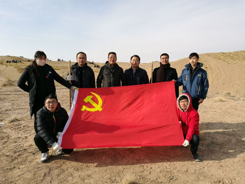 12月15日,药学系党总支8名党员到荣华公司东侧沙漠开展“主题党日+义务压沙劳动”活动,发挥党员先锋模范作用,以实际行动践行十九大精神,为建设一个百姓富、生态美的美丽中国贡献自己的力量。