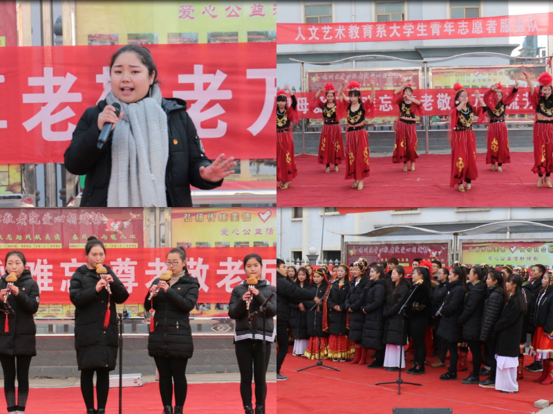 为了充分发挥青年学生在传播文明,弘扬新风中的先锋模范作用,发扬我系师生尊老敬老的优良品德。12月23日,人文艺术教育系团总支组织带领50多名青年志愿者在指导教师唐鑫基带领下赴凉州区中心敬老院慰问演出。