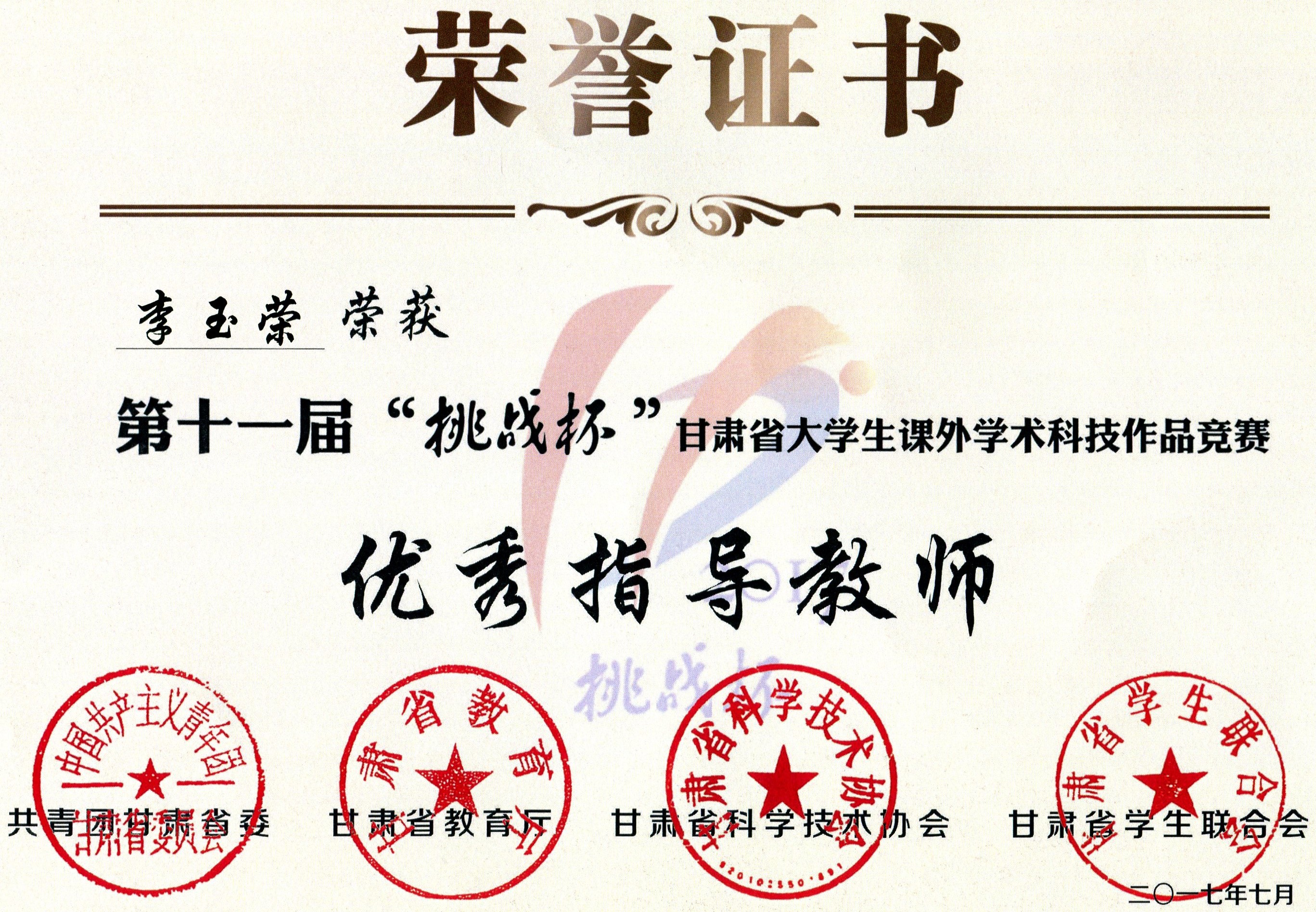 第十一届“挑战杯”甘肃省大学生课外学术科技作品竞赛“优秀指导教师”