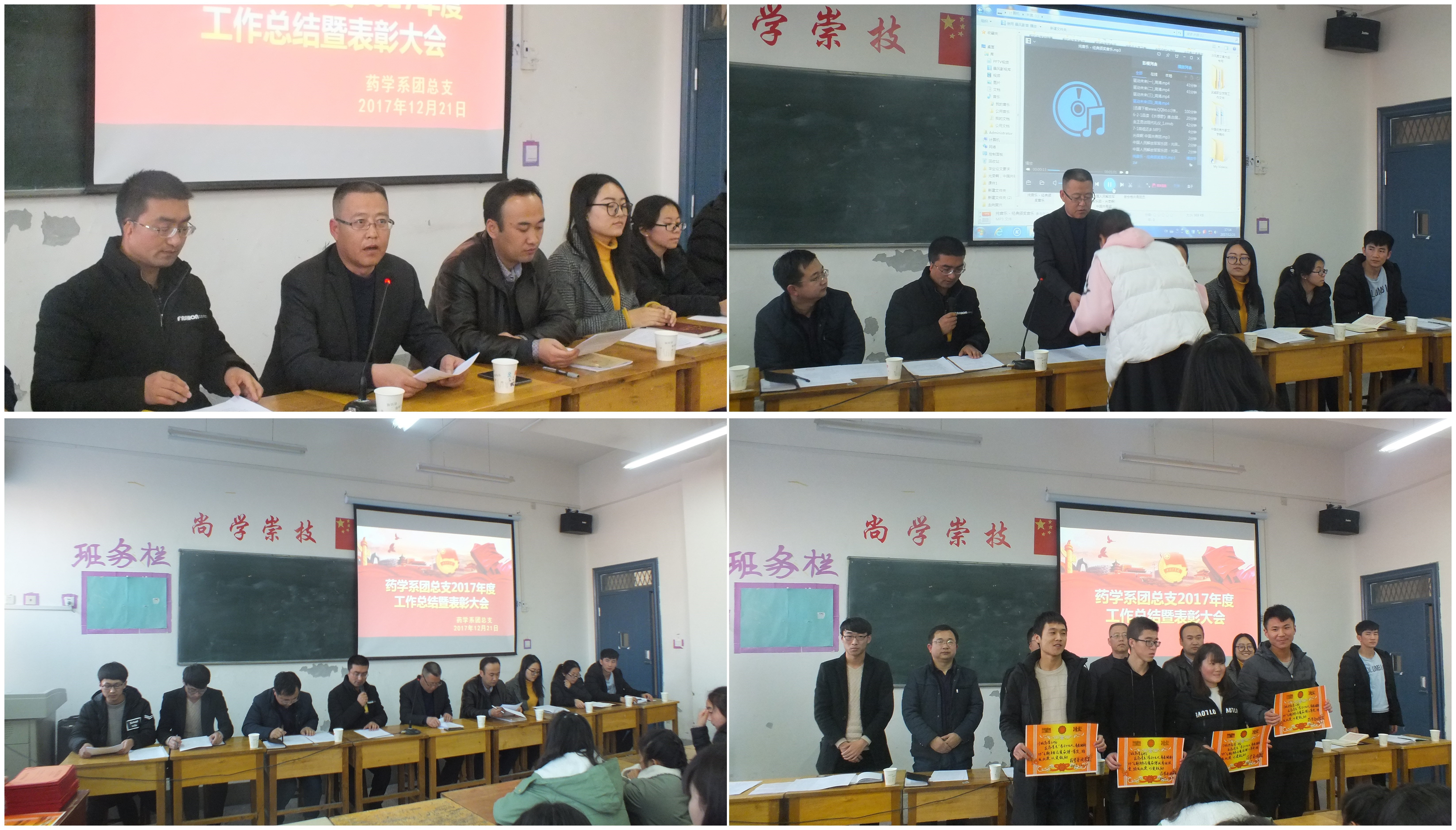 2017年12月21日下午,药学系团总支在明远楼501教室召开了2017年度工作总结暨表彰大会,药学系主任魏润明出席,药学系辅导员、教学秘书、班主任、团学干部及各班学生代表共100余人参加了会议。
