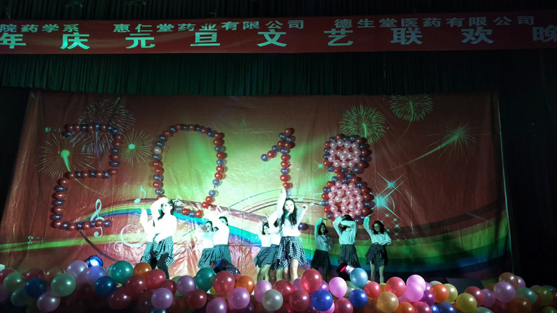 12月29日晚,药学系2018年庆元旦文艺联欢晚会在学院大礼堂隆重举行。学院副院长田迎春、医学技术与信息管理系主任杨如松、兰州惠仁堂人力资源总监岳莉萍、德生堂111医药馆人力资源总监柴霞、药学系主任魏润明以及全体师生700余人欢聚一堂,共忆光辉过去,同话美好未来。
