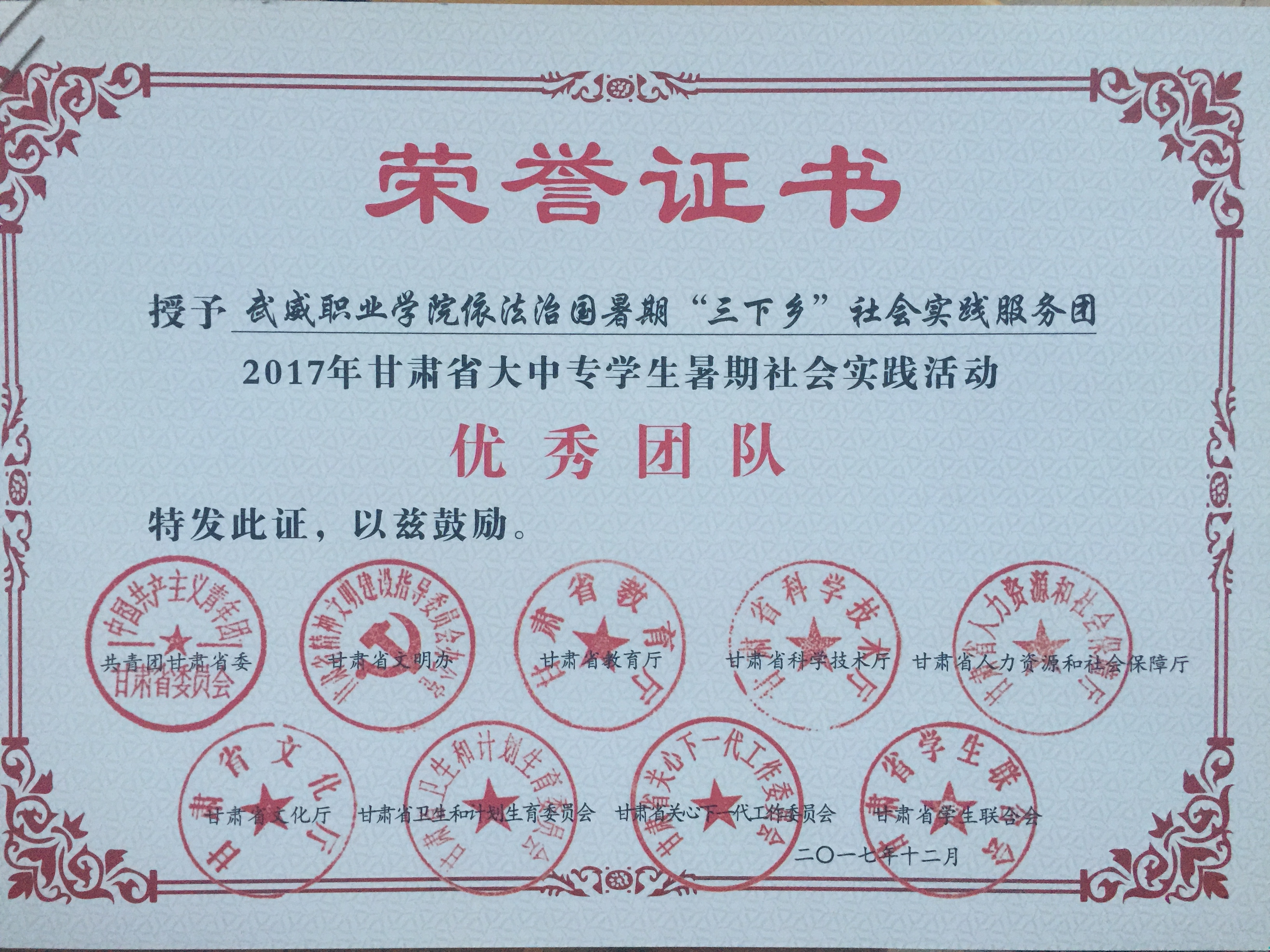 2017年甘肃省大中专学生暑期社会实践活动“优秀团队”--依法治国暑期“三下乡”社会实践服务团