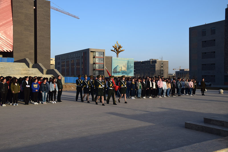 4月9日,迎着初升的朝阳,现代农业技术系全体师生在图书馆广场举行升国旗仪式。7点20分,伴随着雄壮的国歌声和护旗手铿锵有力的步伐,升旗仪式正式开始。