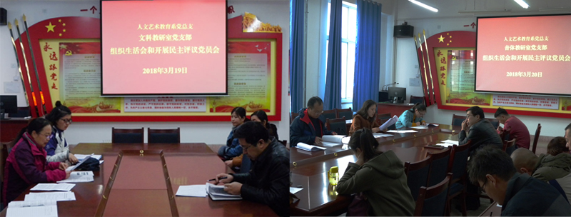 3月19日至3月20日,人文艺术教育系党总支文科教研室党支部和音体教研室党支部分别在励勤楼209党员活动室召开了2017年度基层党组织组织生活会和民主评议党员会。会议分别由支部书记赵金存同志和王小娟同志主持,党支部全体党员参加。