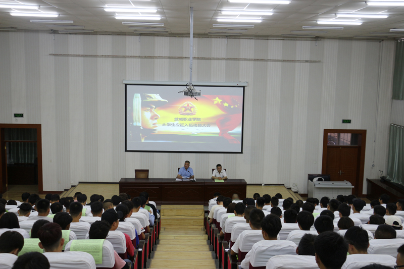 6月10日晚上,学院征兵工作站和凉州区西关街武装部联合在学院尚德楼正德厅举行2018年大学生应征入伍动员大会,学院260多名大学生和各系辅导员参加大会。凉州区西关街武装部部长赵光庆参加大会,会议由学院征兵工作站站长王守云同志主持。