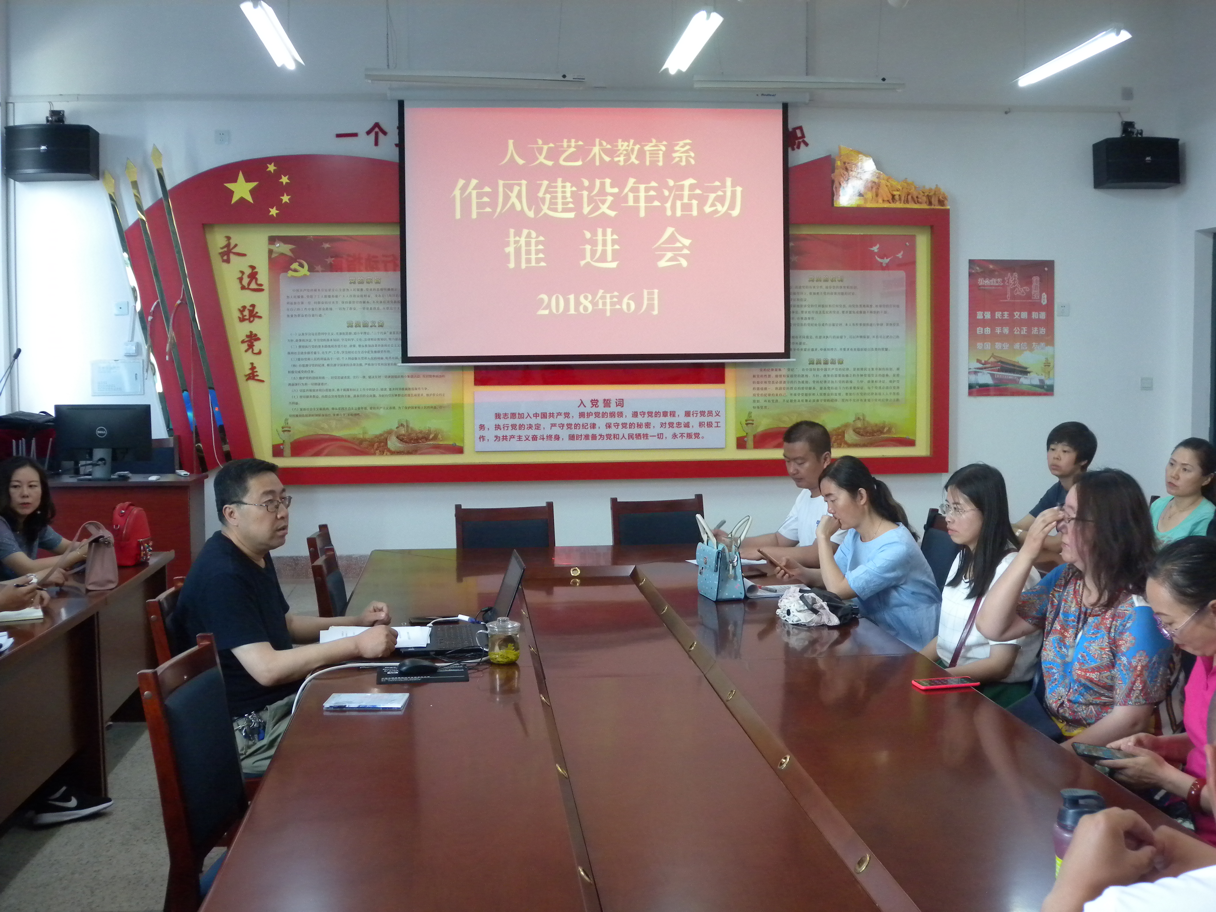 人文艺术教育系于6月13日召开了人文艺术教育系“作风建设年”活动推进会。会议由系党总支书记胡静峰同志主持,全体教职工参加了会议。