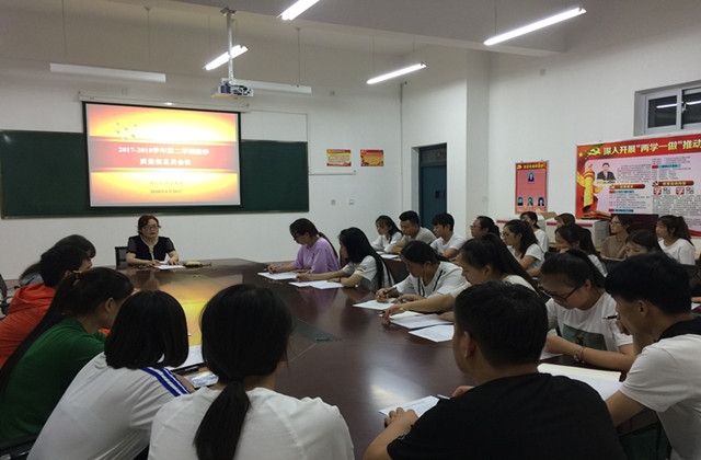 为深入了解教学过程中存在的问题,进一步加强教学质量监控与评价,完善“四位一体”教学质量监控体系和“五位一体”教学质量评价体系,6月21日晚上,系书记晏素珍同志深入各班开展评教评学活动,并组织各班教学质量信息员及学生代表召开了2017-2018学年第二学期的教学质量信息员暨学生代表大会。