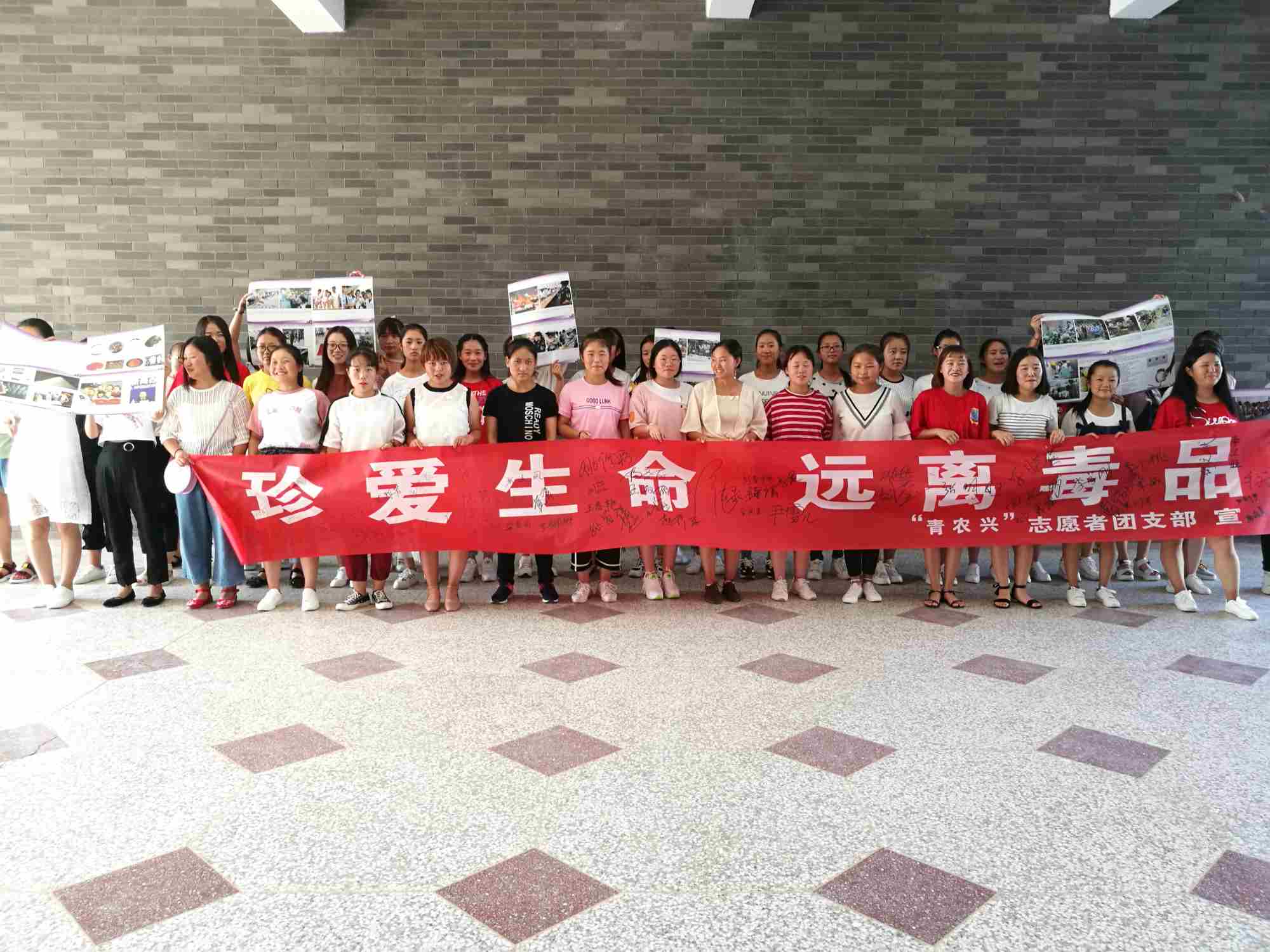 图为我系“青农兴”志愿者团支部开展“珍爱生命 远离毒品”宣传活动。