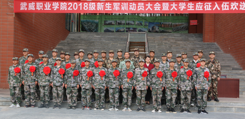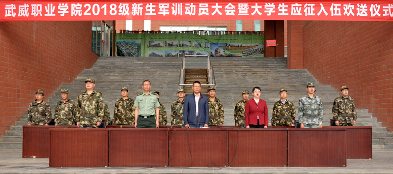 9月5日上午,武威职业学院2018级新生军训动员大会暨大学生应征入伍欢送仪式在大学生活动中心广场举行。学院副院长王永绪、田迎春,凉州区武装部副部长韩小伟,工程防化第76旅副营长夏科银出席仪式。承训单位工程防化第76旅45名战士,学院学工处处长,各系党总支书记、辅导员、班主任,2018级全体学生参加了大会。仪式由田迎春主持。