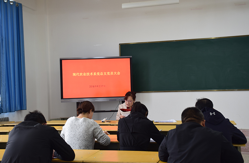 9月17日,现代农业技术系在行树楼305室召开全体党员大会,系党总支书记晏素珍主持会议。