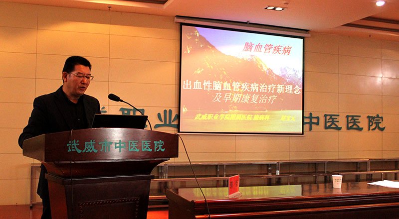 为提高医务人员对于脑病(脑卒中)的诊疗和康复训练水平,推进医院脑卒中中心的筹备建设,学院附属医院于11月11日上午,在内科七楼会议室举办甘肃省中医药继续医学教育项目:脑病诊疗康复培训班。医院副院长宗武山主持培训班开班仪式,副院长毛照海致辞欢迎兰大二院2位神经内科专家讲学指导工作。医院各科室二百余名医疗骨干参加脑病诊疗康复培训班,聆听学术报告。