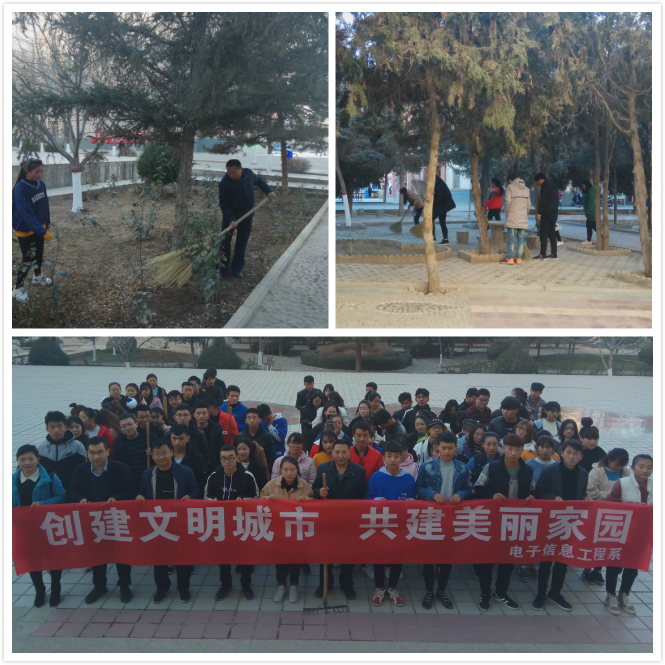 11月22日下午,电子信息工程系党总支组织党员教师、入党积极分子和2018级学生入党申请人开展了环境卫生治理工作,清理校园卫生死角,用实际行动助推武威市文明城市创建和全省文明校园创建。