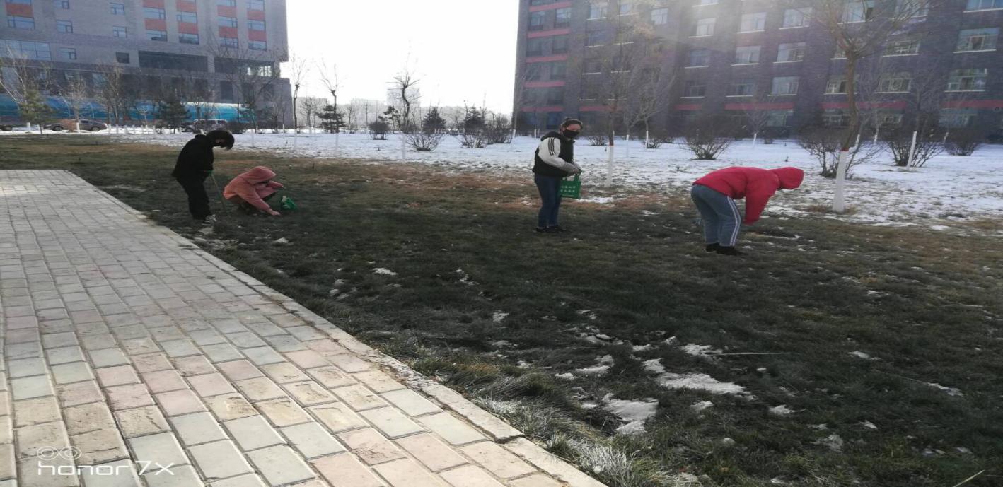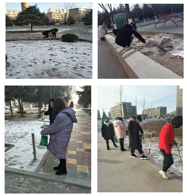 活动期间,由系辅导员齐斌文老师和班主任带领同学们准备好工具准时在各区域集合,对校园内烟头、垃圾进行捡拾,为全院师生营造了良好的学习氛围。