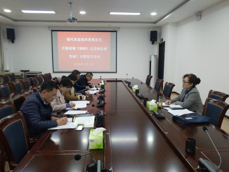 11月19日下午,现代农业技术系党总支全体党员在行树楼二楼会议室开展了观看《榜样3 立足岗位做贡献》主题当日活动。
