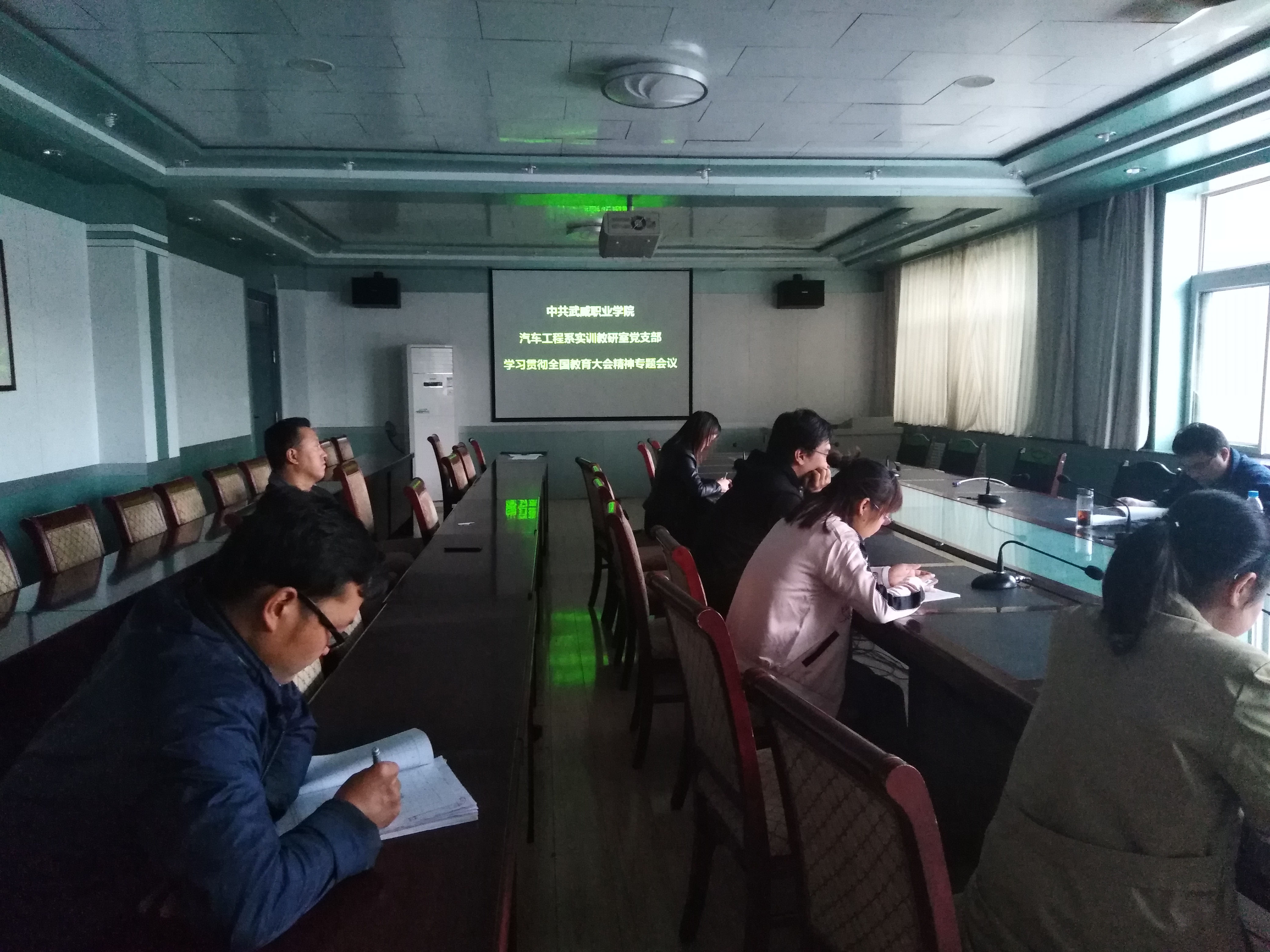 9月18日下午,汽车工程系实训教研室党支部在博学楼二楼会议室召开全体党员大会,专题学习2018全国教育大会精神。