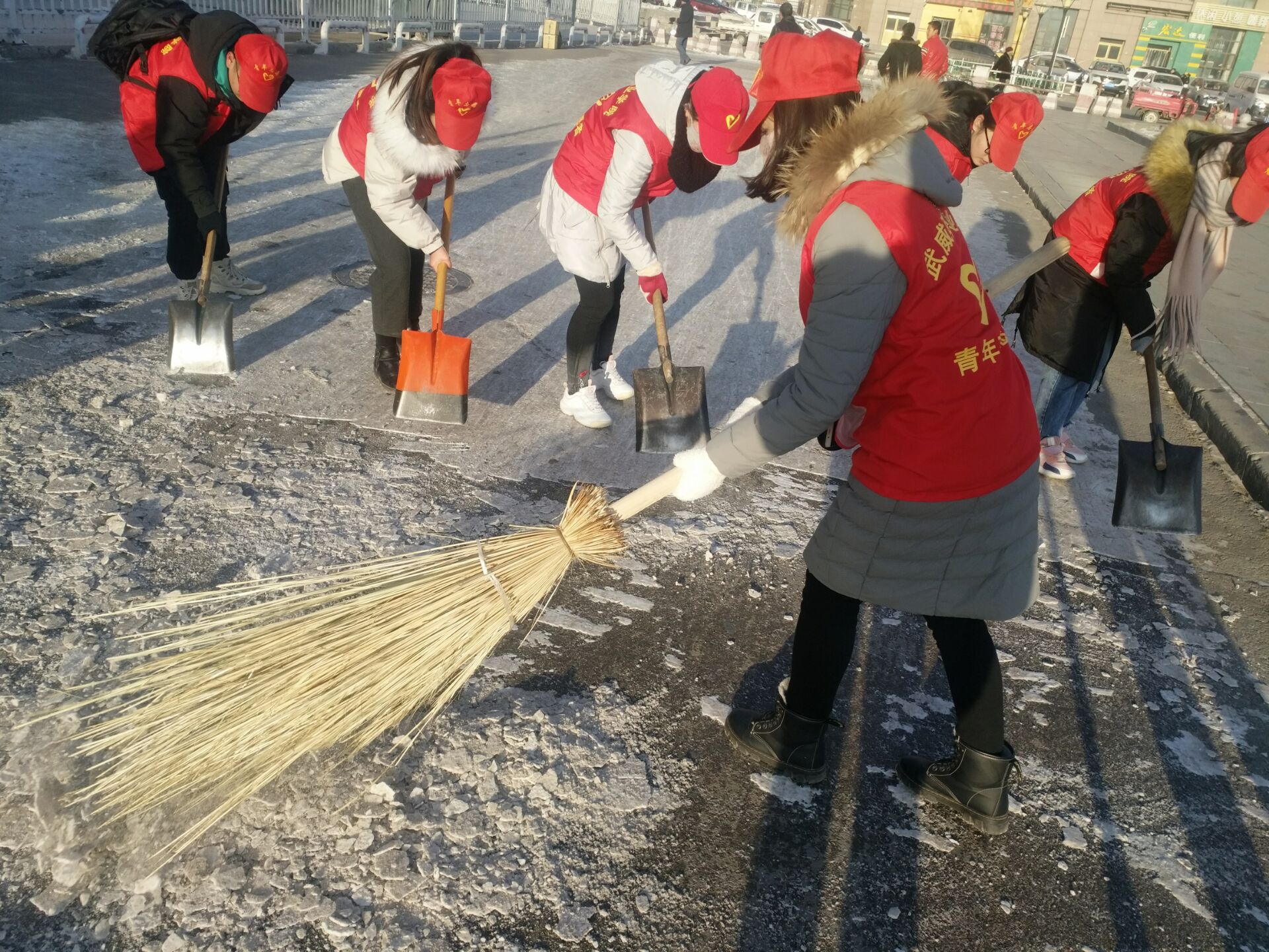 当天上午,志愿者们携着冬日的暖阳将爱撒播在的服务的每一个角落,忙的不亦乐乎。学生志愿者一个个身穿红马夹穿梭在火车站及汽车站一带帮助行人提东西、拉皮箱,清扫路面积雪、清除街道长期残留的垃圾等。志愿者们用自己的双手拾捡着行人留下的烟头和瓜子皮,他们不畏严寒,默默地奉献着热情和温暖。经过的人们纷纷向志愿者们投向了赞许与致谢的目光。