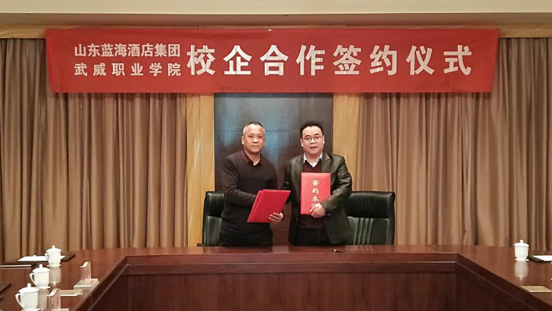 山东蓝海酒店集团与武威职业学院经济管理系校企合作成功签约,将促使学院的师资力量得到进一步的提升,学生的就业前景得到进一步的拓展,同时学院与企业共享各自的行业优势,将对双方的发展发挥极大的促进作用。