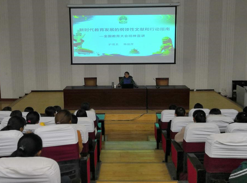 为深入做好全国教育大会精神宣讲工作,根据学院安排12月24日护理系主任韩晓萍在正德厅为护理系200余人进行全国教育大会精神宣讲。