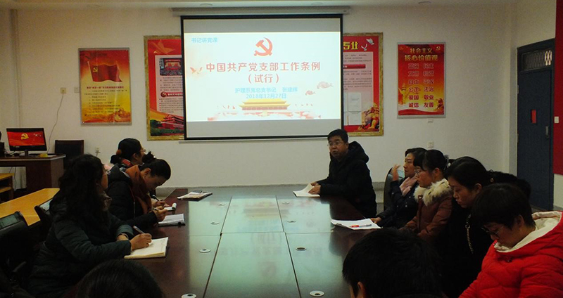 为进一步加强党支部标准化建设, 12月27日,护理系党总支在明远楼103党员活动室开展学习活动,护理系党总支书记张建辉以《中国共产党支部工作条例(试行)》为题,为参会党员们进行专题党课辅导,促进全体党员对党建工作的认识学习。
