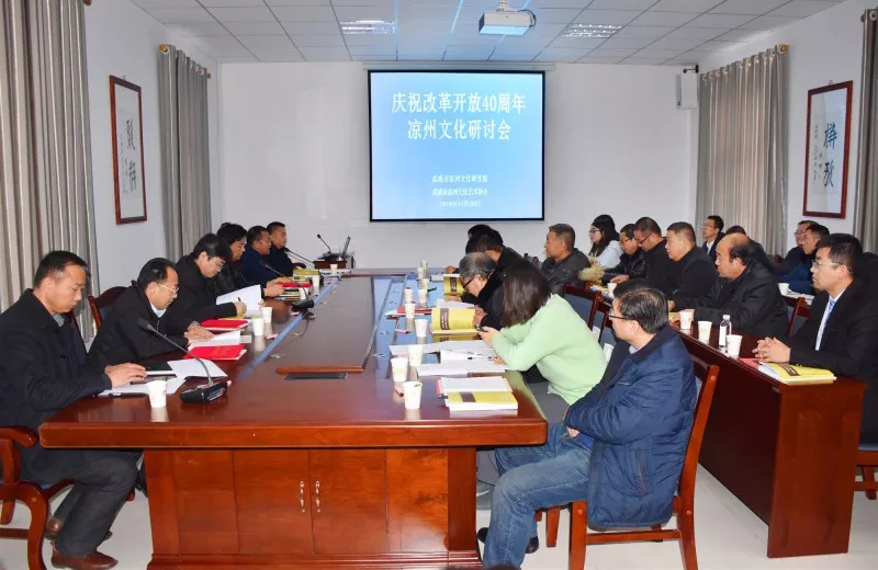 12月20日,武威市凉州文化研究院、凉州文化艺术协会共同举办庆祝改革开放40周年凉州文化研讨会。市委常委、副市长张志强出席会议并讲话,市委宣传部、市文广局、市文联、武威日报社、市志办、市博物馆、武威职业学院等单位的40余名专家、文史研究工作者参加研讨会。