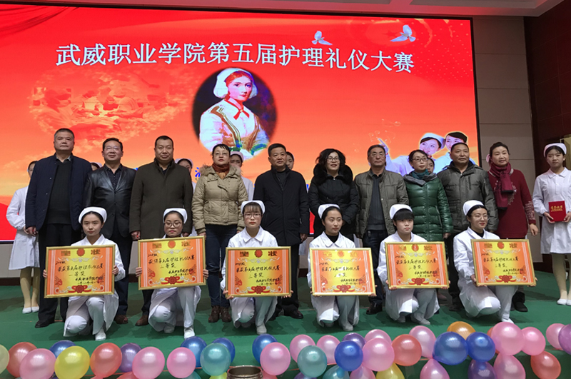 为弘扬南丁格尔精神,强化护生礼仪修养,推进护理专业深层次内涵式发展,助推我市文明城市建设,12月21日,在大学生活动中心菁英厅举办了“武威职业学院第五届护理礼仪大赛”。学院党委书记、院长赵明、学院副院长田迎春、院工会主席金玉龙、教务处处长仲生仁、学生工作处处长王守云、招生就业处处长蔡柱山、科研处处长张玉琴、图书馆馆长黄雪梅、电子信息党总支书记袁青年应邀出席本次活动,护理系300多名师生观看了本次比赛。