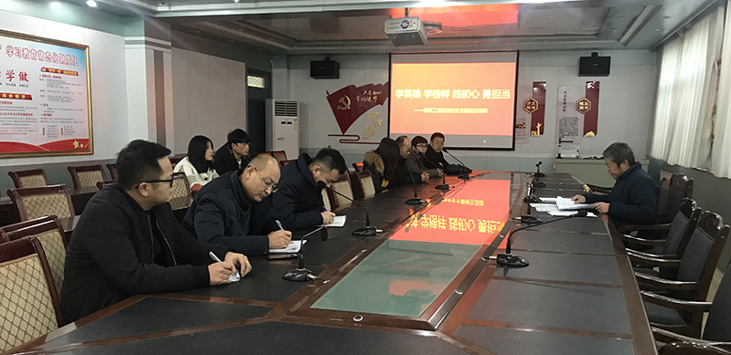 12月18日,建筑工程系党总支开展“学英雄 学榜样 践初心 勇担当”主题党日活动,深入学习以抗灾抢险英雄群体黄群、宋月才、姜开斌和王继才和“甘肃省优秀共产党员”马进伟同志先进事迹,认真贯彻落实习近平总书记重要指示精神。活动由系党总支书记聂百胜主持。