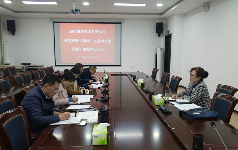 11月19日下午,现代农业技术系党总支全体党员在行树楼二楼会议室开展了观看《榜样3 立足岗位做贡献》主题党日活动。