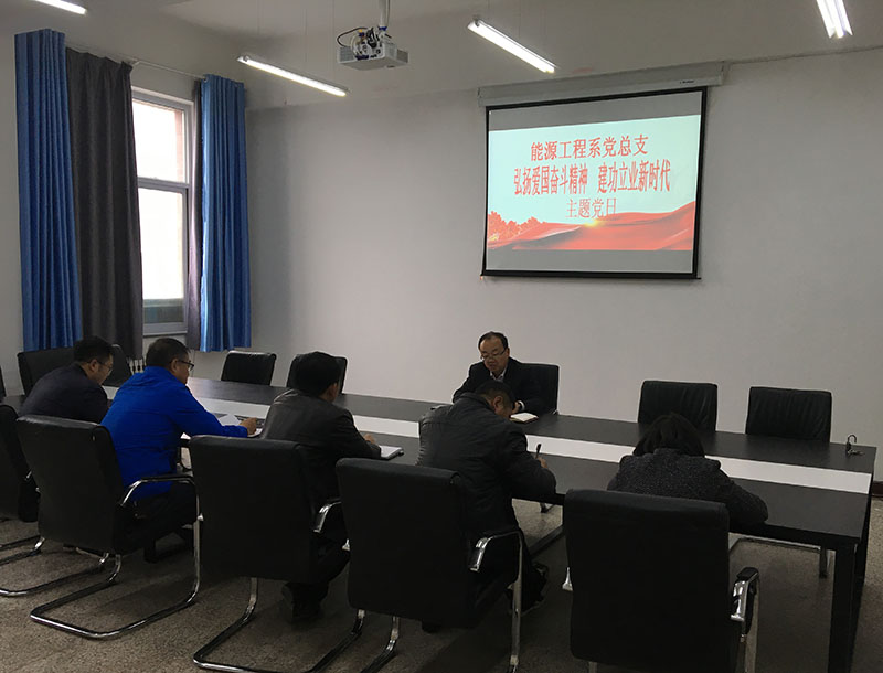 11月16日,能源工程系党总支开展“弘扬爱国奋斗精神 建功立业新时代”主题党日活动,主题党日由系党总支书记黄文源主持,全系党员教师参加了活动。