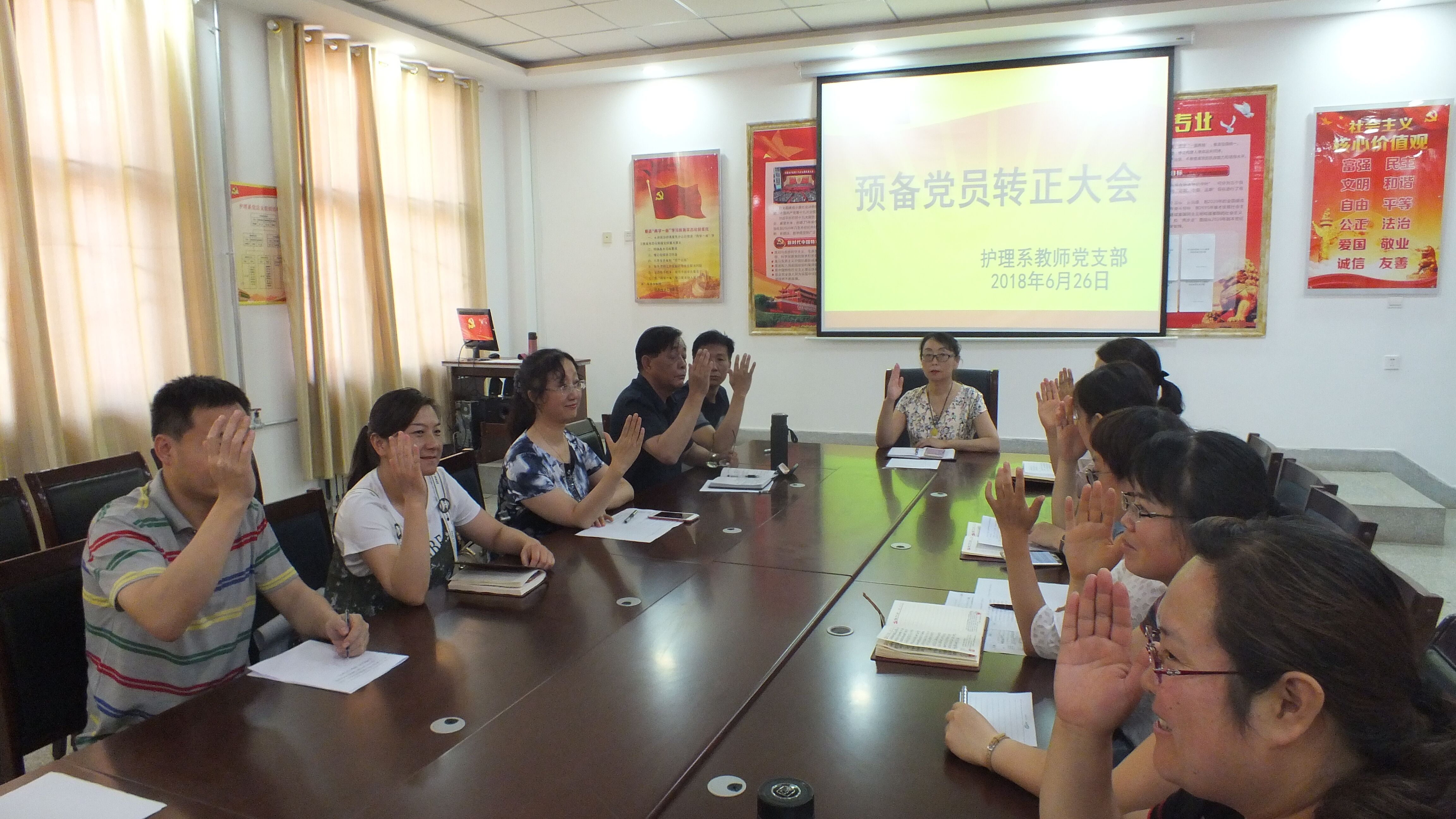 近日,护理系党总支教师党支部、学生党支部同时召开了党员会议,会议主要讨论我系预备党员转正及确定预备党员等相关议题,护理系全体党员、预备党员参加了本次会议。
