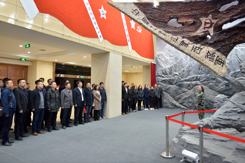 4月4日下午,清明节来临之际,为让广大党员干部缅怀革命先烈,聆听英雄事迹,重温入党誓词,身临其境的接受一次爱国主义教育,学院行政第一党支部、教学第一、第二党支部组织全体党员干部赴古浪战役纪念馆,深入开展了红色教育主题活动。在鲜红的党旗前,30多名党员庄严举起右拳,在行政第一党支部书记张开礼同志的带领下,再一次重温那段刻骨铭心的入党誓言。