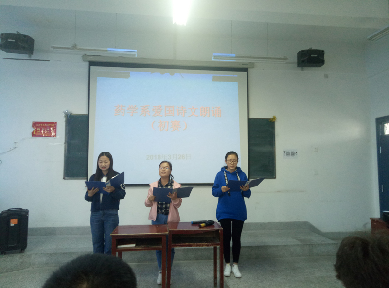 为深入学习贯彻习近平新时代中国特色社会主义思想和党的十九大精神,鼓励当代大学生通过朗诵爱国诗文,感受中华经典文化,塑造民族精神,展现新时期大学生精神风貌,药学系团总支在系党总支的安排和学院团委的指导下,于3月26日在明远楼524教室举办了“我的中国梦”经典爱国诗文朗诵比赛。药学系16级、17级各班学生代表参加了此次朗诵比赛。