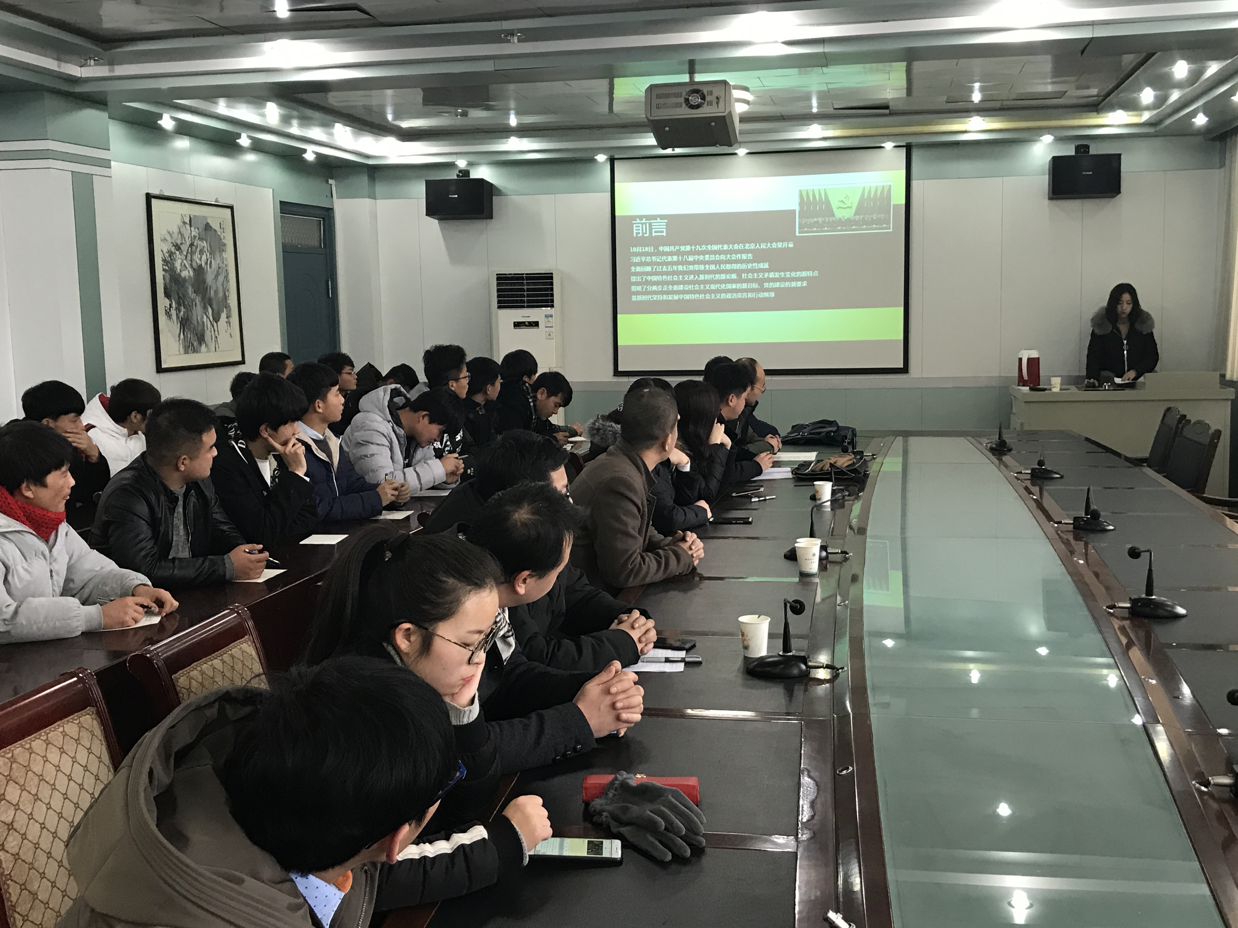 根据《中共武威职业学院委员会关于深入学习宣传贯彻党的十九大精神的通知》精神,1月4日下午,建筑工程系邀请思政教研室侯卿老师,在博学楼二楼会议室,为全系党员、教师、入党积极分子和团学干部做关于学习贯彻党的十九大精神宣讲。会议由系党总支书记聂百胜主持。
