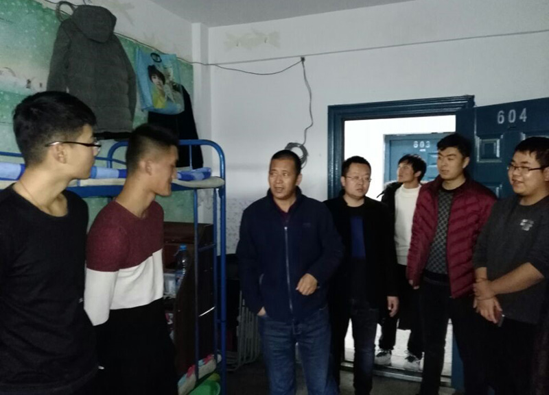 会后,党总支书记梁忠带领全体班主任及辅导员深入宿舍,对宿舍卫生及寝室文化建设进行了检查与指导,并与同学们进行了亲切的交流。