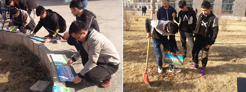 同学们亲手制作了与保护花草树木相关的文明标语牌,并树立在校园内的草坪,提示大家不要随意践踏草坪,要保护草坪创造绿色校园。本次活动同学们共树立了十余块文明标语,遍布学生公寓、1#食堂等区域的多块草坪,为过往的人群传播了文明理念,展现了文明校园建设成果。