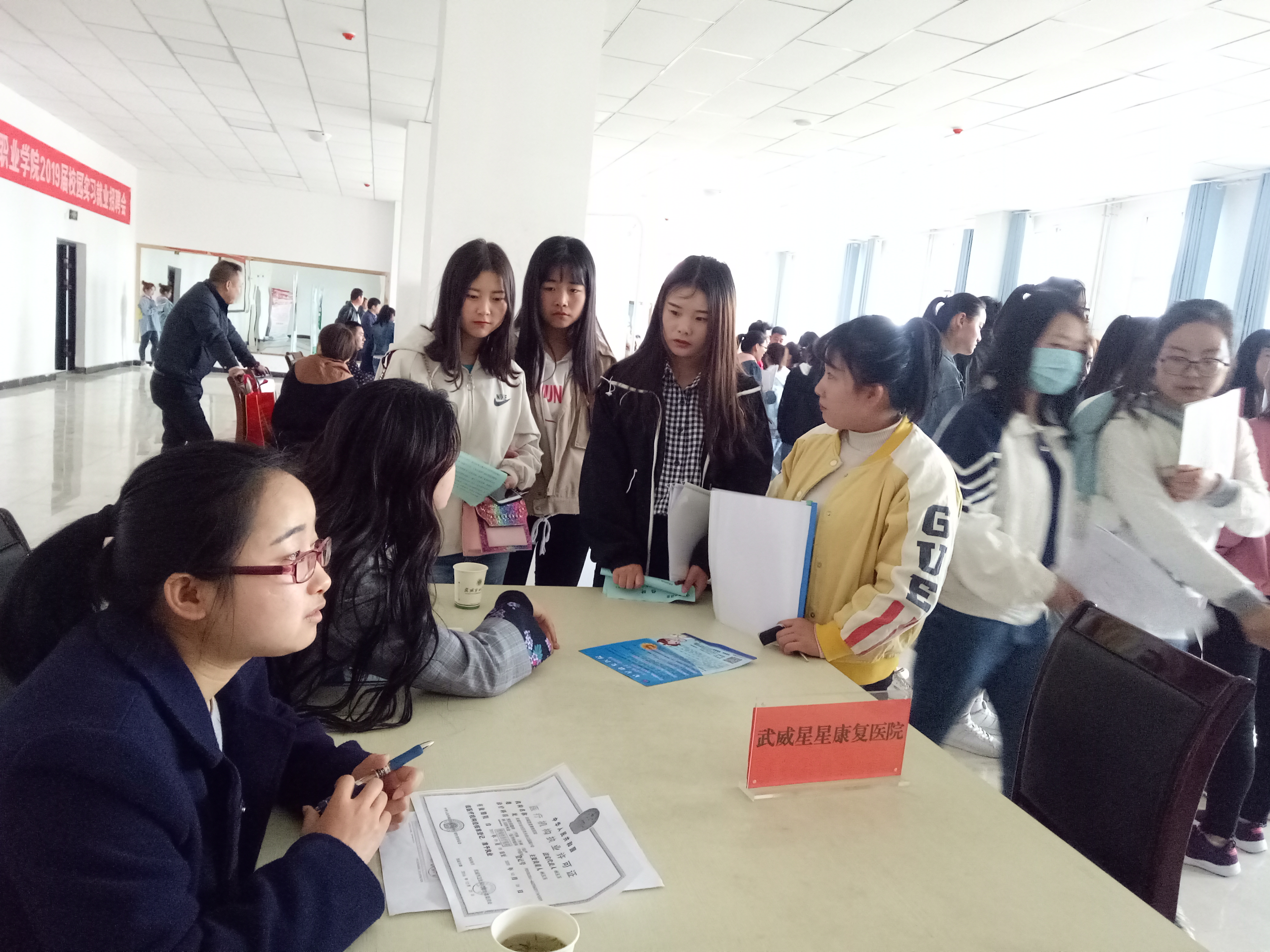 参加本次招聘会的共有来自省内外医疗相关单位10家,包括东莞定远陶齿制品有限公司、康泰健美医疗科技(深圳)有限公司、武威远方药业、武威市西艺义齿制作有限公司、 武威宝山口腔医院、红山窑卫生院、武威星星康复医院等共提供150多个就业岗位,基本满足我系四个专业毕业的就业需求。