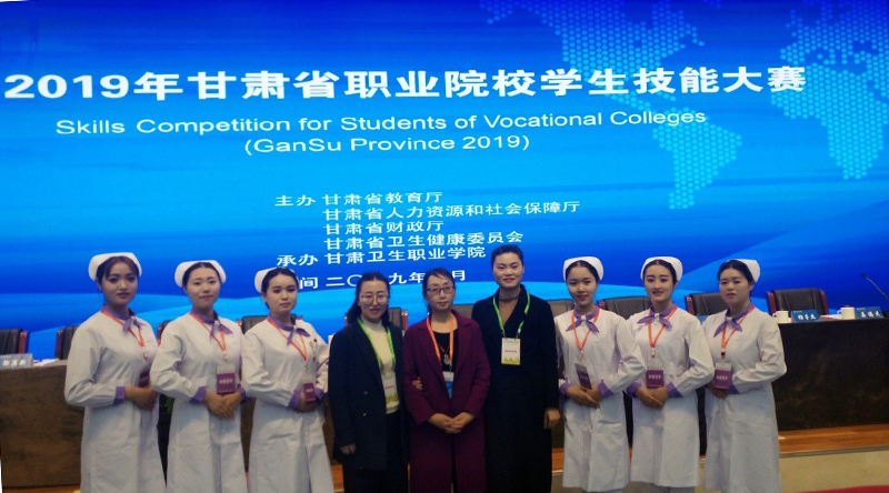 近日,“全省职业院校学生技能大赛”在甘肃卫生职业学院顺利闭幕。本次大赛由甘肃省教育厅、甘肃省人力资源和社会保障厅、甘肃省财政厅和甘肃省卫生健康委员会主办,甘肃卫生职业学院承办。大赛共有来自全省9所高职院校的37名选手参加。我院护理系主任韩晓萍带队,指导教师陈调调、张彩霞及六名选手参加了此次大赛。