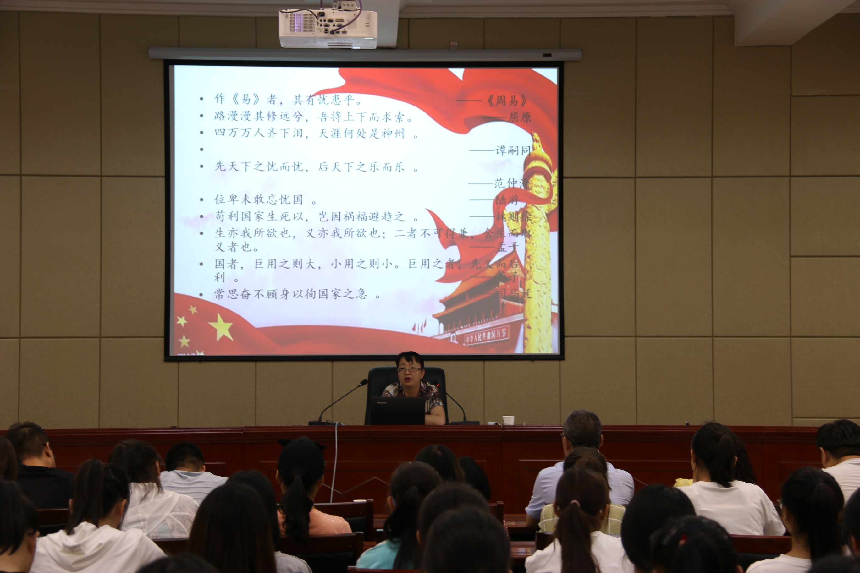 7月3日下午,学院党委委员、副院长田迎春在行树楼北侧会议室为医学技术学院、药学系的全体党员、预备党员、入党积极分子和其联系班级、宿舍、社团学生共计140余人作了题为《溯源 求理 践行——爱国主义精神传承与弘扬》的党课。