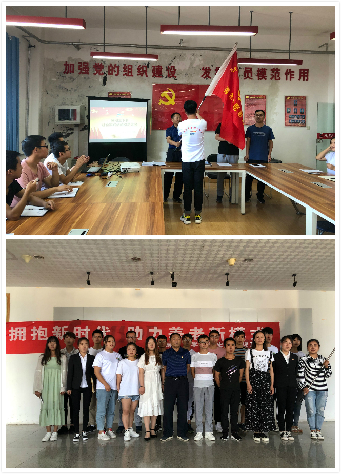 最后,系党总支书记袁青年向实践团进行授旗,并提出具体要求:一是要统一思想,充分认识暑期社会实践的意义;二是要明确任务,切实理解暑期社会实践的目的;三是要充分发挥专业特色和优势,增强社会实践的实际效果;四是精心组织,确保安全圆满地完成此次实践活动。