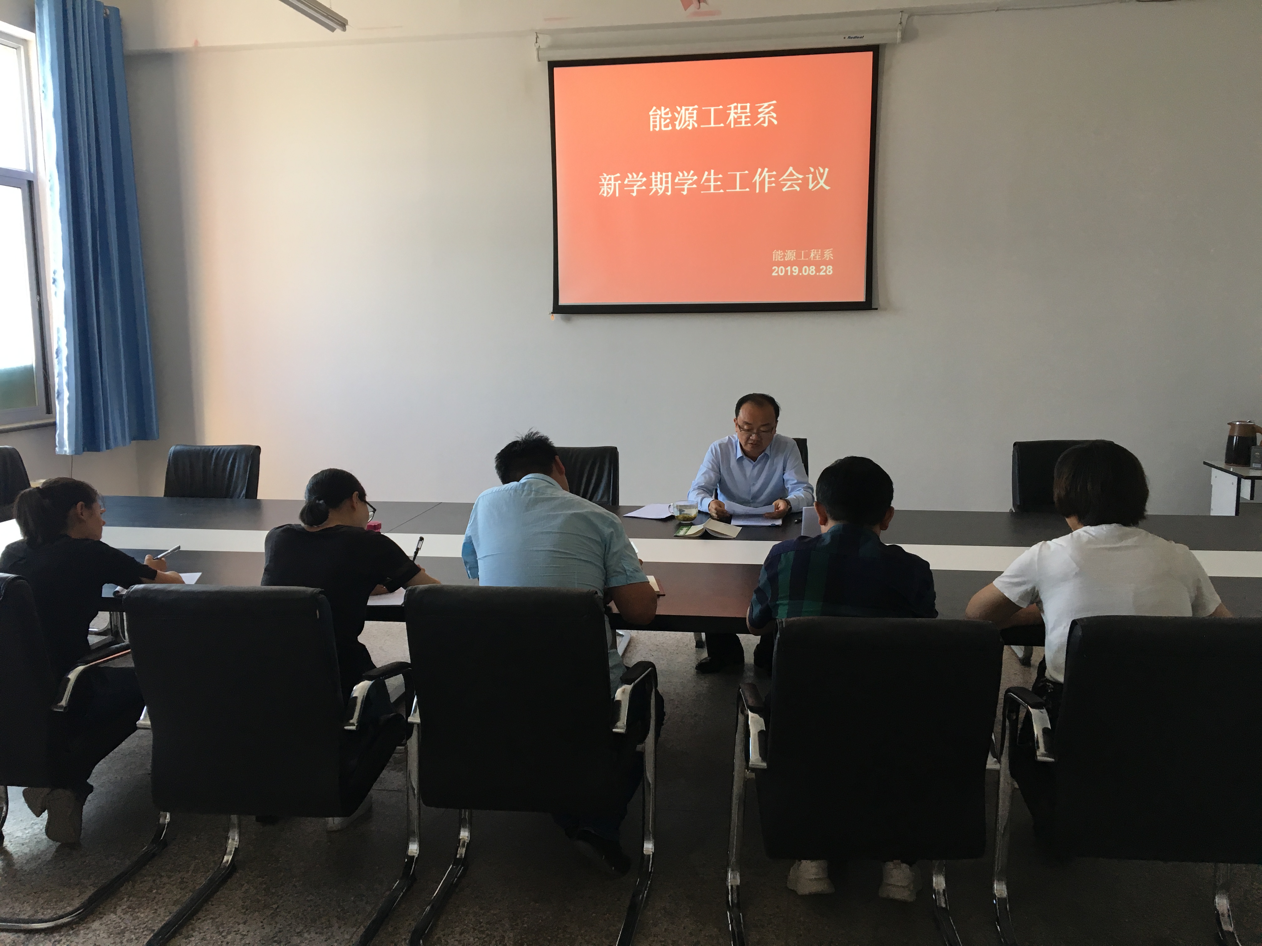 8月28日,能源工程系党总支书记黄文源主持召开新学期学生工作会议,安排部署本学期学生工作和新生报到工作,全体辅导员、班主任参加了会议。