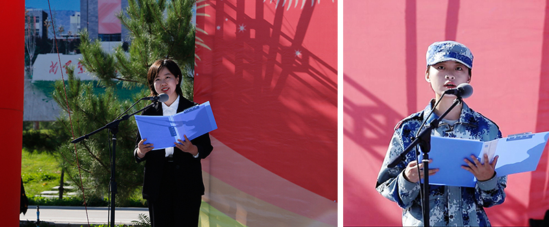 伴随着庄严肃穆的国歌,大会正式拉开帷幕。在激昂的音乐声下,国旗护卫队向我们走来,他们目光坚毅、身姿矫健、步伐整齐有力,彰显了须眉巾帼、志在四方的豪情壮志。“不忘初心、牢记使命”,“尚学崇技、求真创新”,“立德树人、服务发展、促进就业、适应需要”铿锵有力的口号生动的展现了新时代大学生的青春风貌。