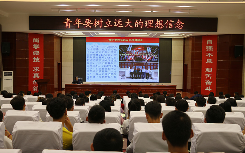 赵明以八步沙六老汉三代人治沙造林先进群体坚持38年治沙造林的事迹为开篇,向同学们阐述了理想信念的含义和对人生的重要意义,告诫广大青年要有理想、有目标,并要为之而努力奋斗。