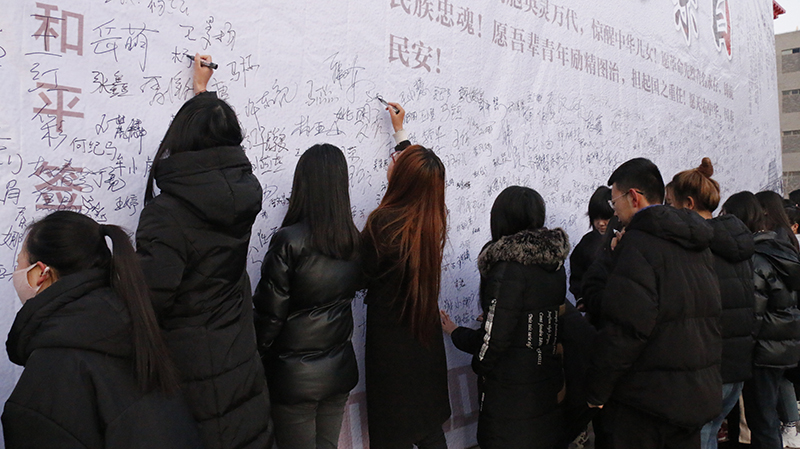 活动最后,参会师生在纪念背景墙上签名,共同祈愿: