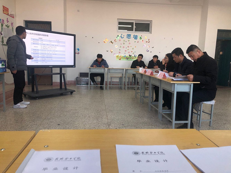 2019年12月17日上午,能源工程系在行树楼403、405教室开展了2020届毕业生毕业设计答辩活动,2020届光伏发电技术与应用专业全体毕业生分11个小组参加了本次毕业设计答辩。