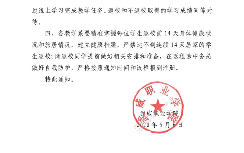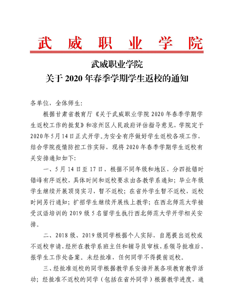 武威职业技术大学位于中国旅游标志之都、中国葡萄酒城、全国历史文化名城、最美中国文化旅游城市——武威,是国家骨干高等职业院校、省级双高校、省级示范校、省级优质校。