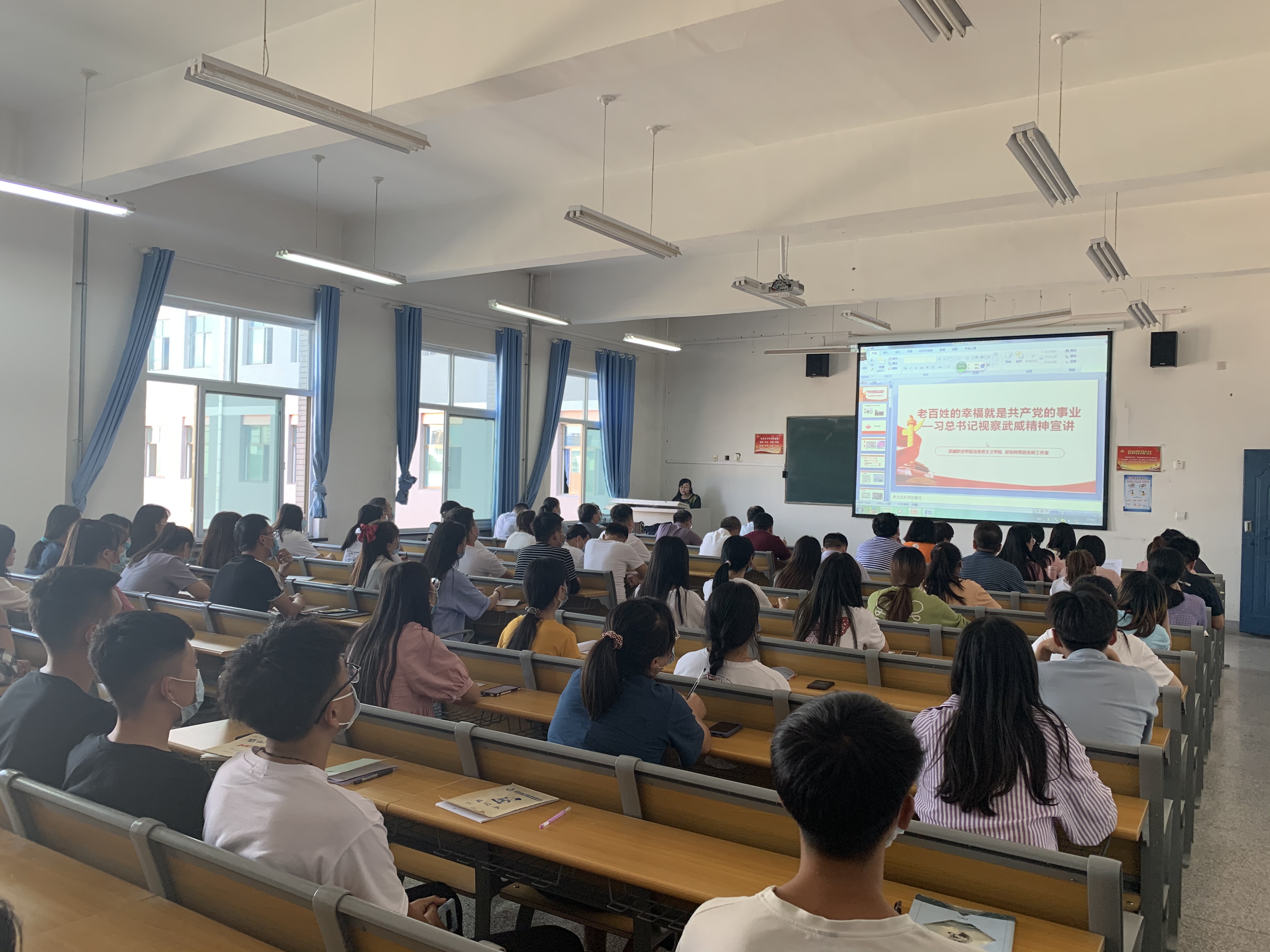 为深入学习贯彻习近平新时代中国特色社会主义思想,落实《中共武威职业学院委员会关于开展“1+6”理论政策宣讲活动的通知》精神,6月23日下午,医学技术学院邀请马克思主义学院副教授王静以“老百姓的幸福就是共产党的事业—习总书记视察武威讲话精神”为题,在明远楼311室为我系全体教师、学生代表做了专题理论政策宣讲。