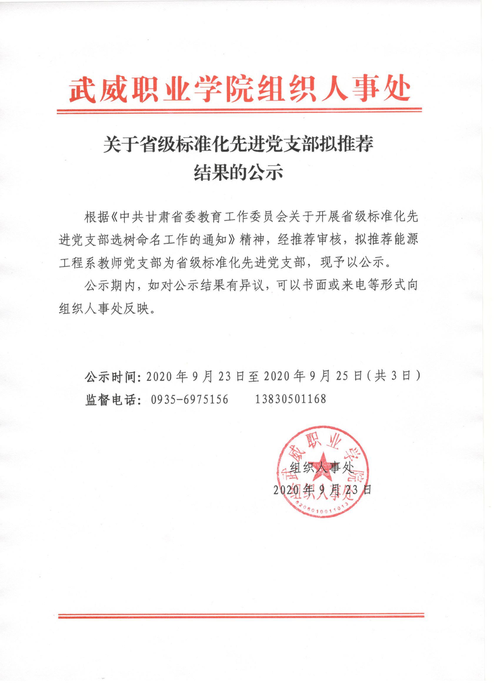关于省级标准化先进党支部拟推荐结果的公示