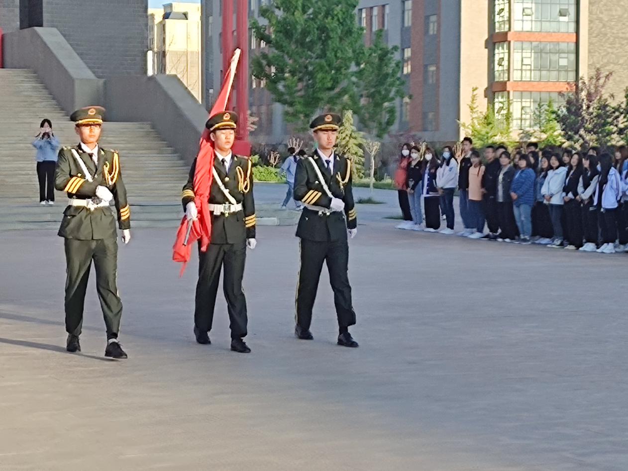 升旗仪式开始,国旗护卫队队员们护送鲜艳的五星红旗进场,伴随着庄严的《中华人民共和国国歌》,五星红旗冉冉升起,迎风飘扬。全体师生向国旗行注目礼,深怀对祖国无限的热爱和崇高的敬意。仪式完毕,2020级学生代表进行了国旗下的演讲,他们的演讲抑扬顿挫、声情并茂,热烈的歌颂了共产党取得的辉煌成就,庄严承诺在日后的学习生活中求真务实,谨记恩师教导,牢记当代大学生应有的社会责任感与历史使命感,学党史紧跟党走,筑梦青春新征程。