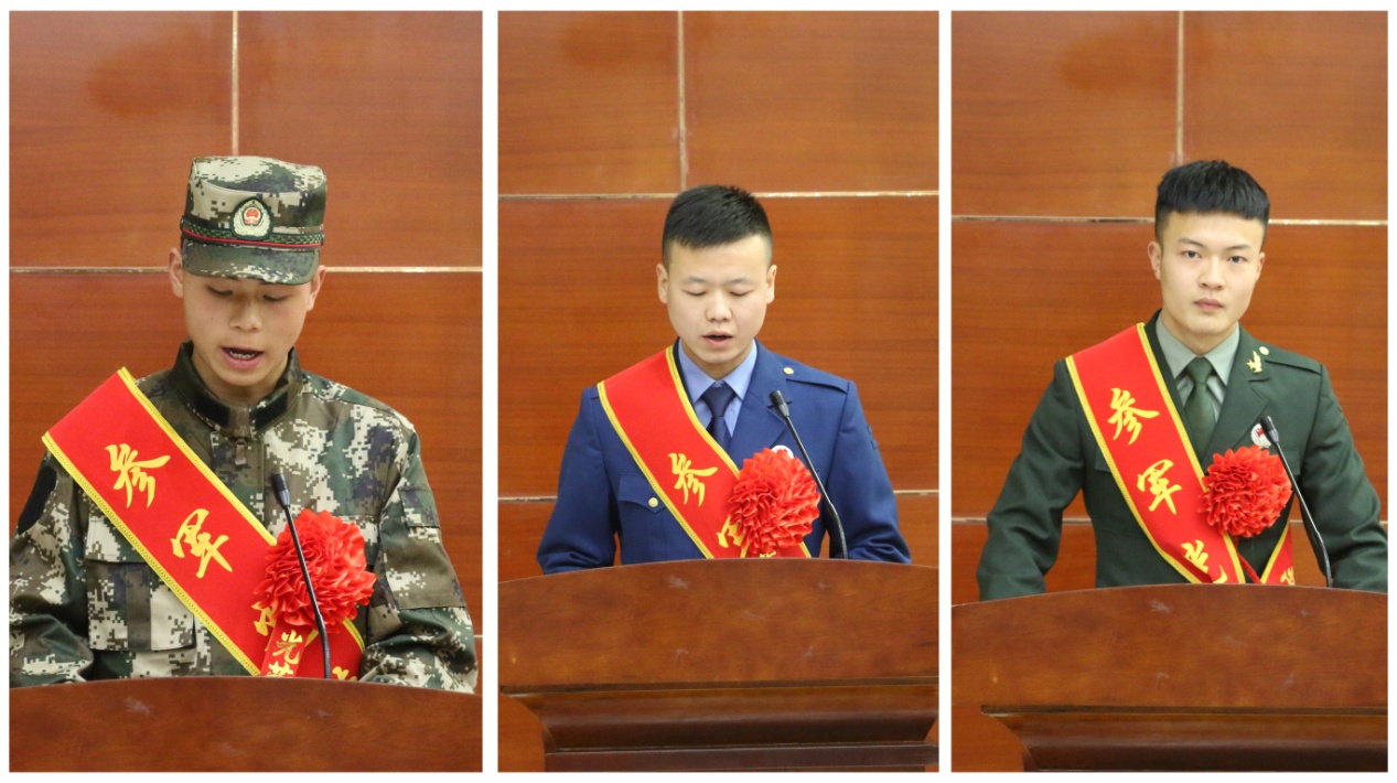 机械制造系学生张进和电子信息工程系学生蔺煜明分别代表2019年、2020年退役复学学生发言,他们讲述了自己的从军经历和退伍感想,表达了“退役不退志、退伍不褪色”的学习生活态度,并向新入伍的同学们送去了真诚的祝福。