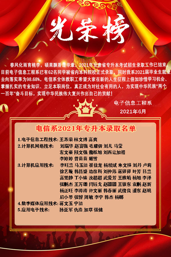 电子信息工程系2021届毕业生专升本录取光荣榜