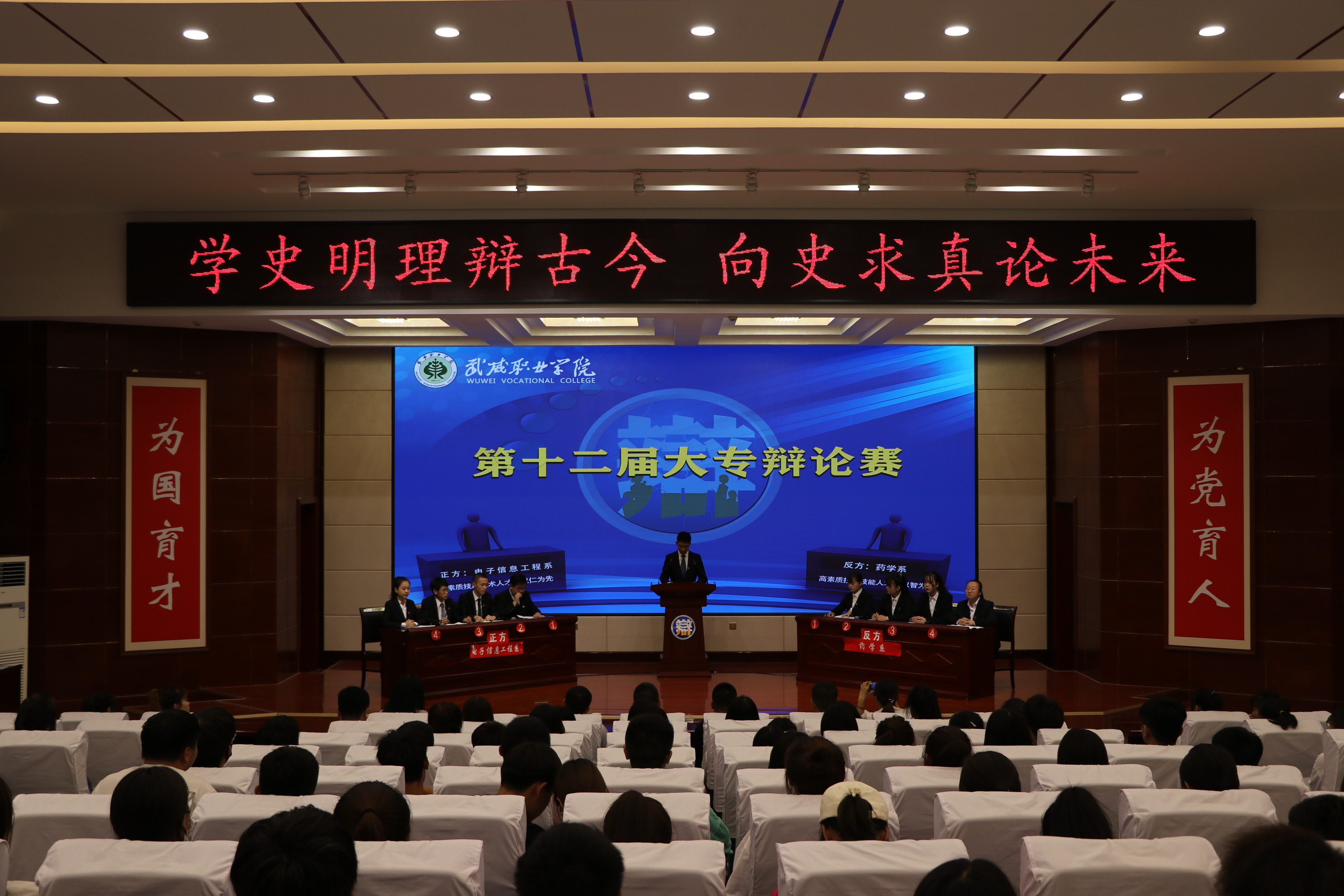 2021年 7月1日晚武威职业学院第十二届大专辩论赛在大学生活动中心菁英厅成功举行。